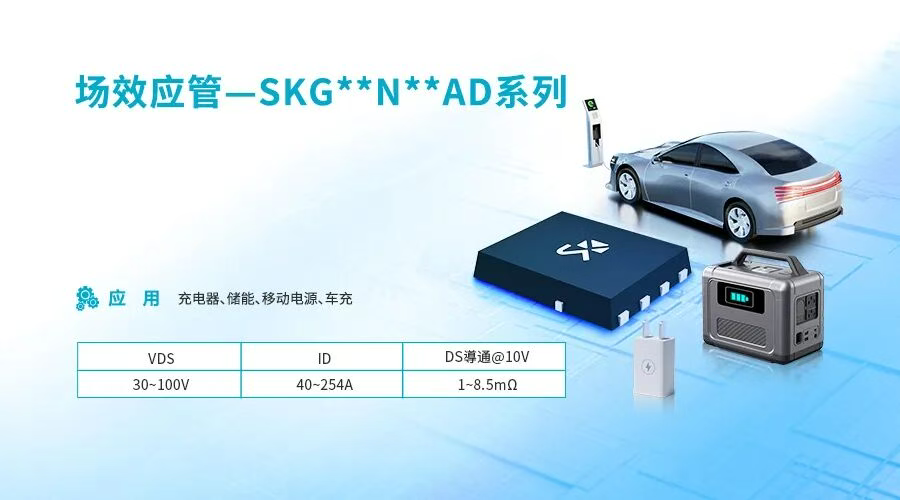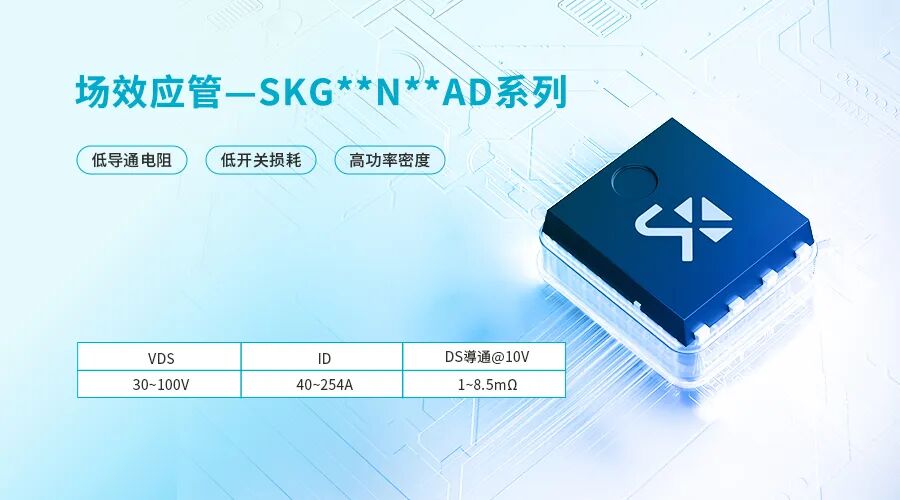 在这一背景下,時科推出的 SKG100N06AD N沟道增强型功率MOSFET,凭借60V耐压、100A电流承载、超低RDS(on) 与 PDFN5x6-8L小型封装,成为新一代高效能电源和功率电路的理想之选。